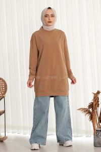 Modalamelif Bisiklet Yaka Düz Renk Sweat Sütlü Kahve