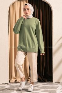 Modalamelif Bisiklet Yaka Düz Renkli Sweat Çağla Yeşili