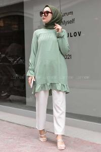 Modalamelif Bisiklet Yaka Etek Ucu Fırfırlı Tunik Çağla Yeşili