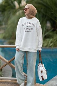 Lamelif Jasmin Bisiklet Yaka Oversize Sweat Beyaz