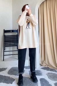 Modalamelif Bisiklet Yaka Girl Nakış Detaylı Sweat Krem