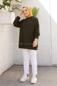 Modalamelif Bisiklet Yaka Jakarlı Tunik Haki