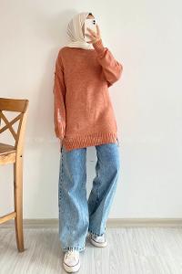 kolu nakış detaylı, bisiklet yaka, düz renk kazak