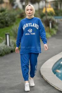 Modalamelif Bisiklet Yaka Maryland Yazı Baskılı Detaylı Takım İndigo