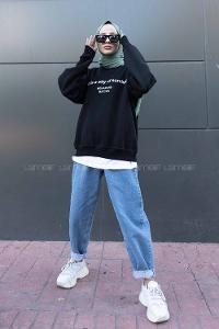 Lamelif Armalı Tesettür Sweat Siyah