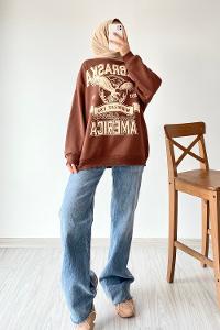 Lamelif Kapüşonlu Salaş Sweatshirt Acı Kahve