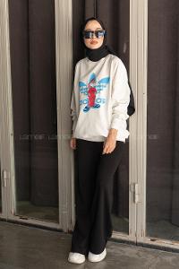 Lamelif Always Be Cool Baskılı Sweat Beyaz