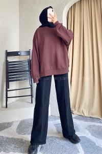 Modalamelif Bisiklet Yaka Oversize Sweat Kahverengi