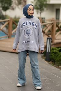 Modalamelif Bisiklet Yaka Oxford Yazı Baskı Detaylı Sweat Gri