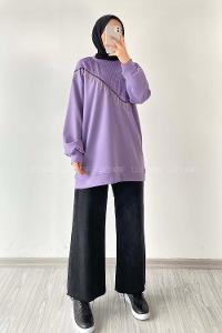 Lamelif Kol Biyeli Sweat Mor