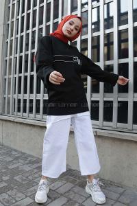 Lamelif Balon Kol Yaka Ve Etek Ucu Manşetli Bol Sweat Siyah