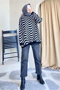 Modalamelif Bisiklet Yaka Salaş Dalga Triko Kazak Siyah