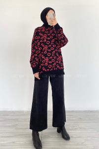 soyut desenli bisiklet yaka etek ucu ve kolu fitlilli sweat.