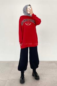 Modalamelif Bisiklet Yaka WRSTBHVR BERLİN Yazı Baskılı Sweat Kırmızı