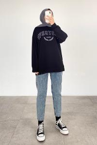 Lamelif Armalı Tesettür Sweat Siyah