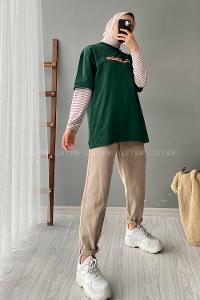 Modalamelif Bisiklet Yaka Yazı Baskılı T-Shirt Yeşil