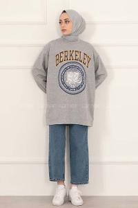 Modalamelif Bisiklet Yakalı Berkeley Yazı Baskılı Tunik Gri