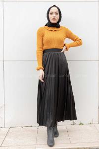 Modalamelif Boğazlı Fırfırlı Triko Kazak Hardal Sarısı