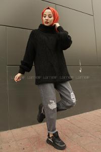 Modalamelif Boğazlı Önü Saç Örgü Kazak Siyah