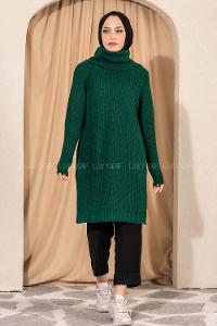 Modalamelif Boğazlı Yırtmaç Detaylı Salaş Triko Tunik Zümrüt