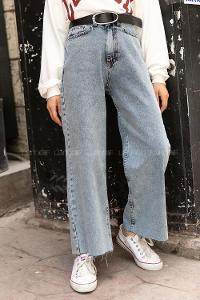 Lamelif Midi Boy Bol Paça Pantolon Kot Mavi