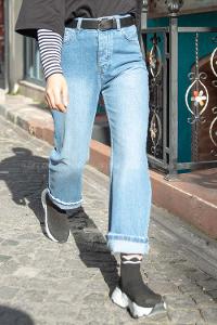 Lamelif Paçası Katlı Jean Füme Yıkama