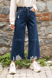 Modalamelif Bol Paça Yırtıklı Kot Pantolon Koyu Mavi