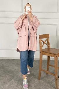 Lamelif Dekoratif Cep Detaylı Tesettür Ceket Lacivert