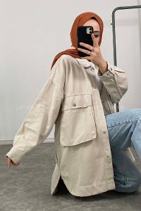 Lamelif Dekoratif Cep Detaylı Tesettür Ceket Lacivert