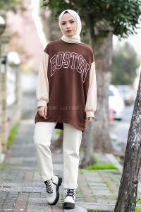 Lamelif Armalı Tesettür Sweat Acı Kahve