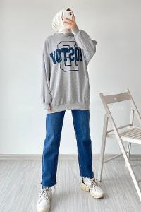 Modalamelif Boston Yazı Basklı Kapüşonlu Sweat Gri