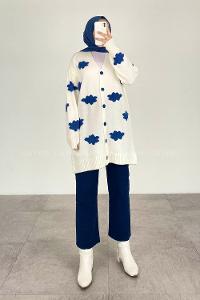 Modalamelif Boydan Düğmeli Bulut Desen Hırka Ekru