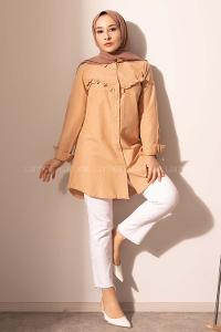 Lamelif Kol Tünel İp Detaylı Gömlek Acı Kahve
