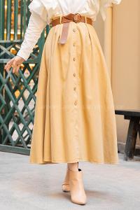 Lamelif Vual Kemerli Tesettür Etek Sarı