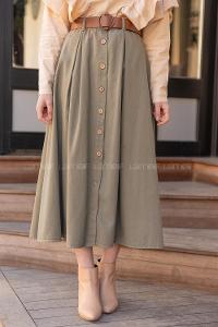 Modalamelif Boydan Düğmeli Kemerli Etek Haki