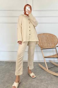 Lamelif Arma Detaylı İkili Takım Bej