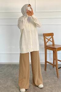 Modalamelif Boydan Düğmeli Ovarsize  Hırka Ekru