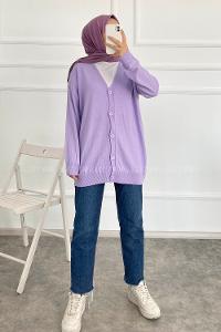 Modalamelif Boydan Düğmeli Ovarsize Hırka Lila