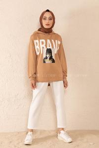 Modalamelif Brave Yazı Baskılı Sweatshirt Sütlü Kahve