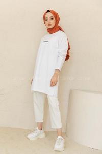 Lamelif Gizli Düğme Detaylı Tesettür Tunik Beyaz
