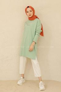 Lamelif Bağlama Detaylı Uzun Tesettür Tunik Mint Yeşili