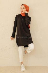 Lamelif Manşeti Biyeli Tunik Acı Kahve