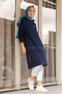 Lamelif İki iplikli Arma Detaylı Sweat Tunik Lacivert