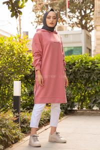 Lamelif Yırtmaç Detaylı Sweat Pembe