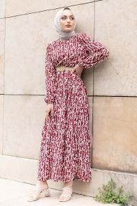 Modalamelif Burçak Desen Hasır Kemerli Elbise Bordo