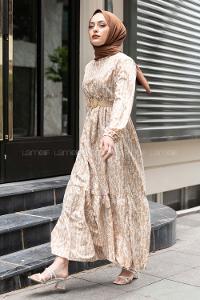 Lamelif Elica Tesettür Elbise Taş Rengi