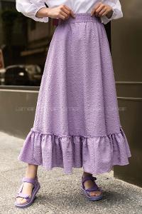 Modalamelif Bürümcük Desenli Eteği Fırfır Detaylı Etek Lila