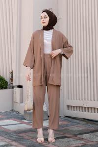 Lamelif Balance Armalı Çımalı İkili Tesettür Takım Camel