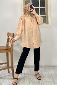 Modalamelif Büzgülü Salaş Gömlek Sütlü Kahve