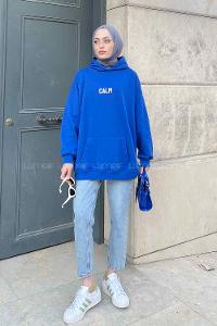 Lamelif Calm Baskı Detaylı Sweatshirt Saks Mavisi